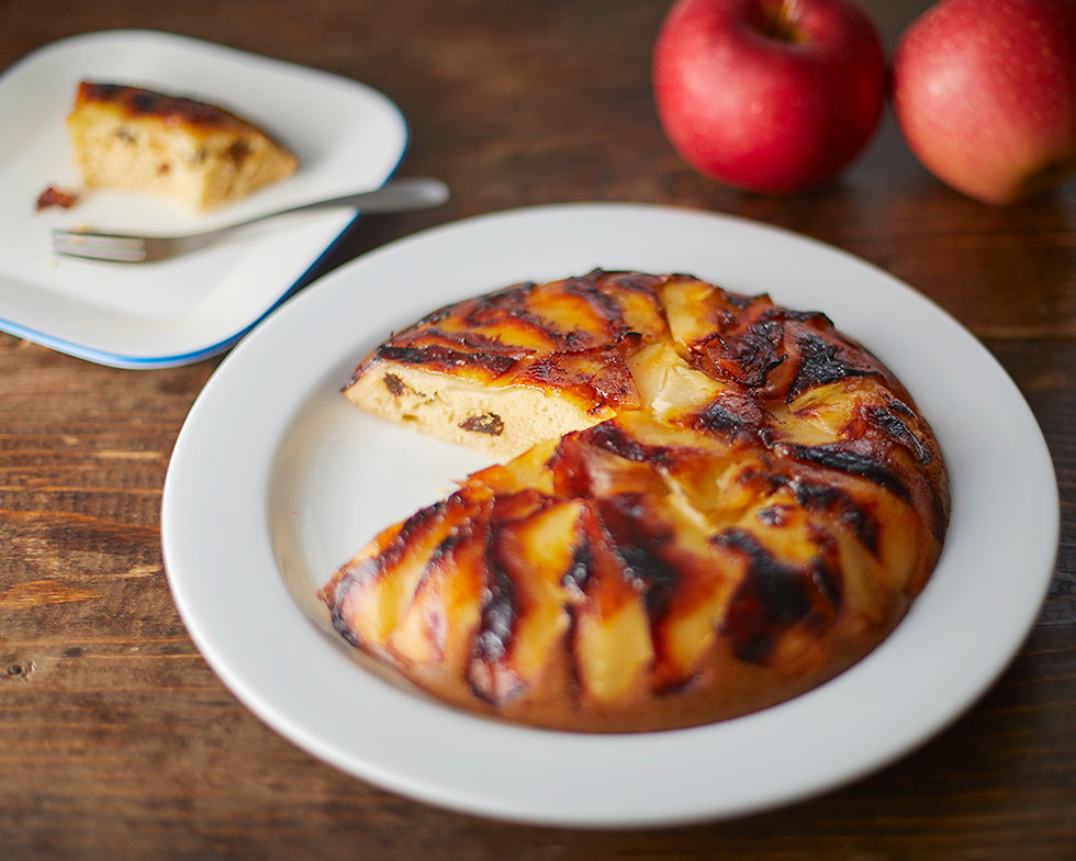 フライパンで作ったカラメルアップルパンケーキ タタン風。